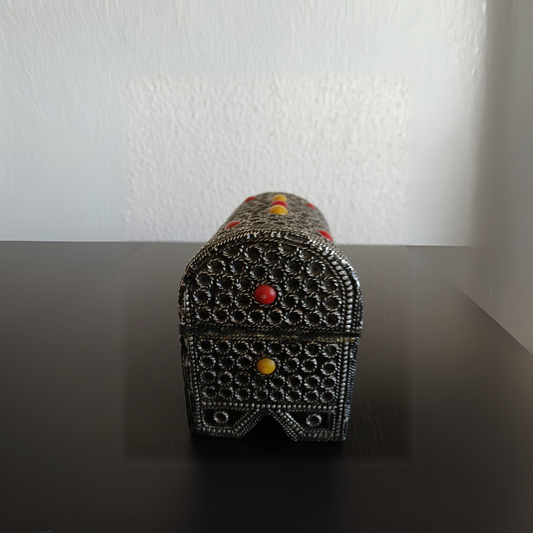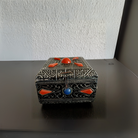 Coffret berbère en métal ciselé – Ornement traditionnel avec perles colorées