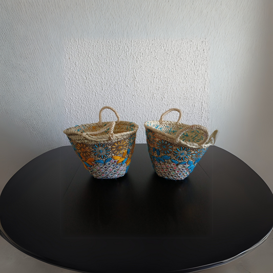 Panier en osier brodé à la main – Artisanat marocain raffiné