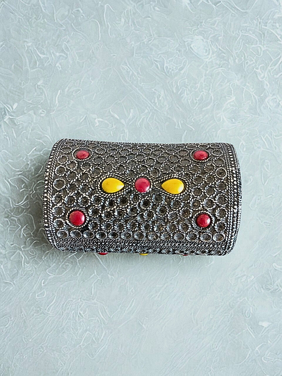 Coffret berbère en métal ciselé – Ornement traditionnel avec perles colorées