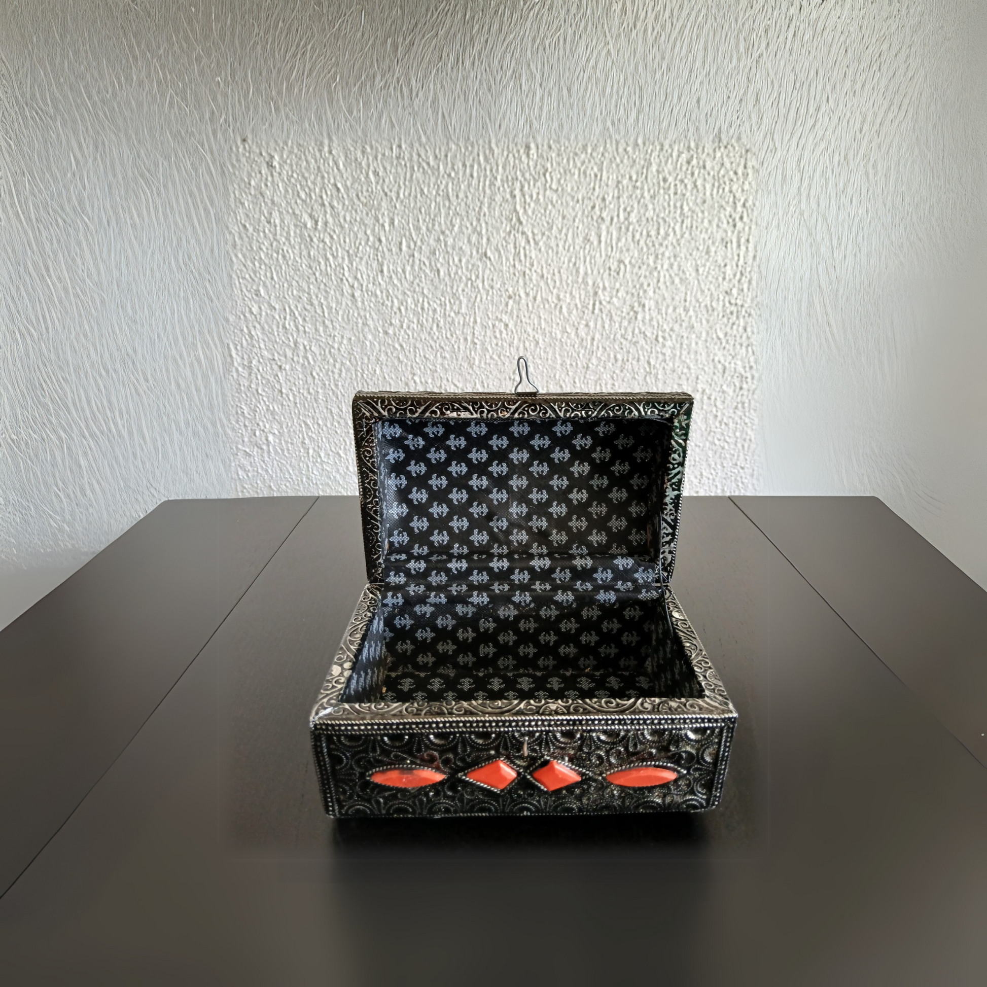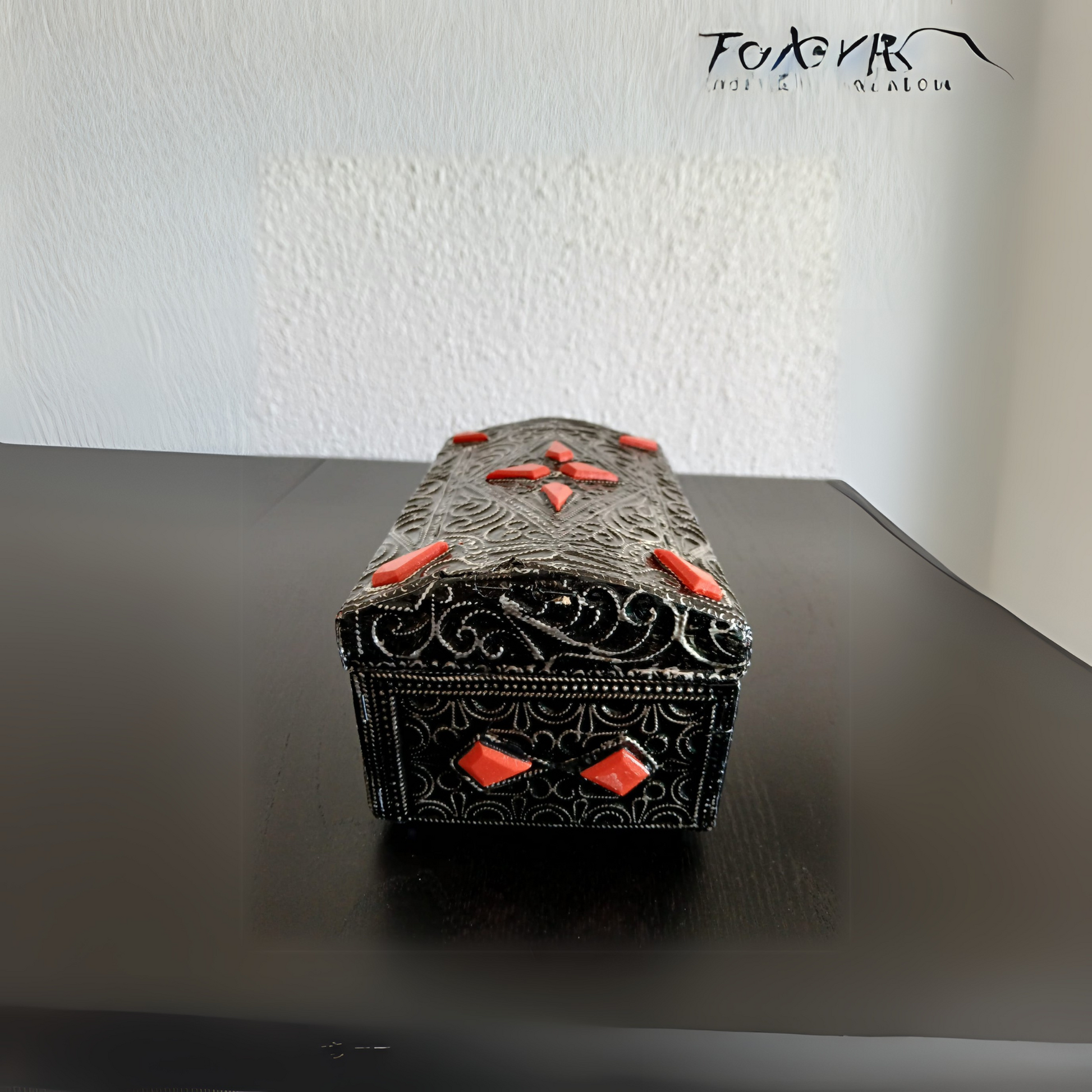 Coffret berbère en métal ciselé – Ornement traditionnel avec perles colorées