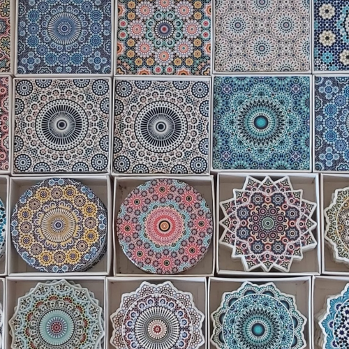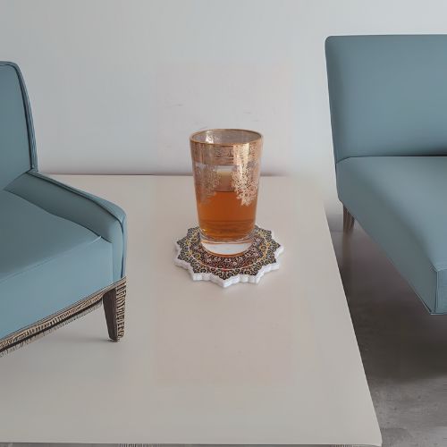 Ces sous-verres ne sont pas seulement beaux, ils sont également pratiques et résistants, parfaits pour protéger vos surfaces des boissons chaudes ou froides. Livré dans un élégant coffret, cet ensemble est une idée cadeau idéale pour les amateurs d’art et de décoration ethnique, ou pour embellir votre propre maison avec une pièce qui marie art et utilité. Transformez chaque instant de dégustation en un voyage sensoriel vers le Maroc grâce à ces sous-verres artistiques et intemporels.