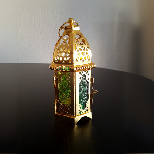 Découvrez l’artisanat marocain dans toute sa splendeur avec cette lanterne décorative en métal doré, fabriquée à la main par des artisans marocains. Chaque détail de cette pièce unique est soigneusement conçu pour apporter une touche d’élégance orientale à votre intérieur. Dotée de panneaux en verre coloré et texturé dans des tons riches de vert, rouge et jaune, cette lanterne diffuse une lueur chaleureuse et apaisante lorsqu’une bougie chauffe-plat est placée à l’intérieur.