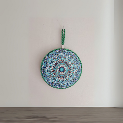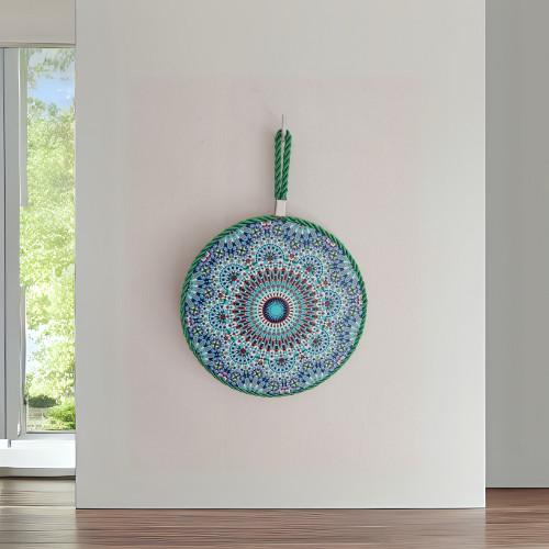 Avec ses détails minutieusement peints à la main, ce sous-plat présente un motif en forme de mandala, harmonieux et coloré, dans des tons apaisants de bleu, vert et rouge. Parfait pour protéger vos surfaces tout en sublimant votre décoration, il est aussi pratique que décoratif.